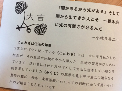 去年から引いているこの神社のおみくじ。去年は中吉だったと思いますが、