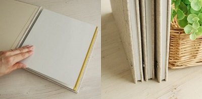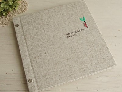 丈夫な麻のアルバム。表紙のワンポイント刺繍が可愛いです。