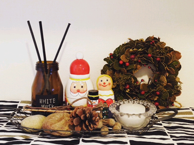 (こじんまりとクリスマスの飾りつけをしてみました)