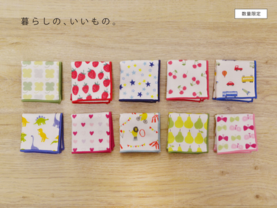 今年届いた新作は、待望のミニハンカチです。