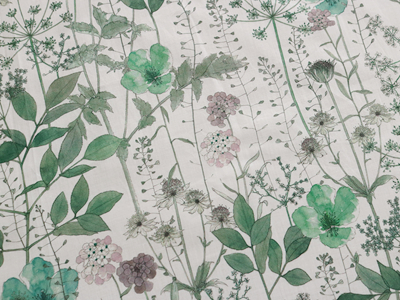 ガーデニング愛好家のお庭をイメージして様々な花をミックスしたデザイン。