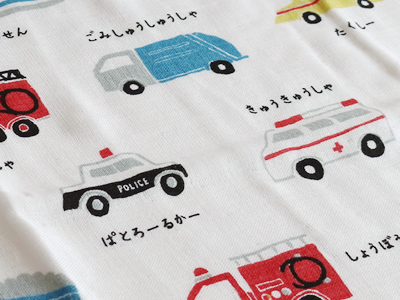 つみき柄は、パッと目を引くポップなカラーで保育園や幼稚園でも目印に。