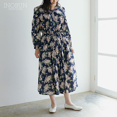 大人っぽく着られるシックなネイビーベースに、 淡いピンク色がさりげない華やぎを添えてくれます。
