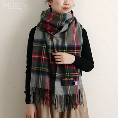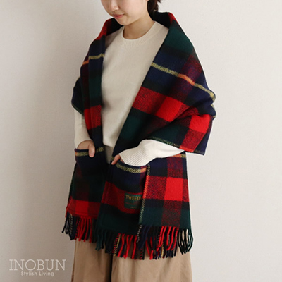 大判チェックが寒い季節にピッタリ。もこもこファーが可愛い、プリントチェック2シリーズはベージュ、レッド、イエローの3色。
