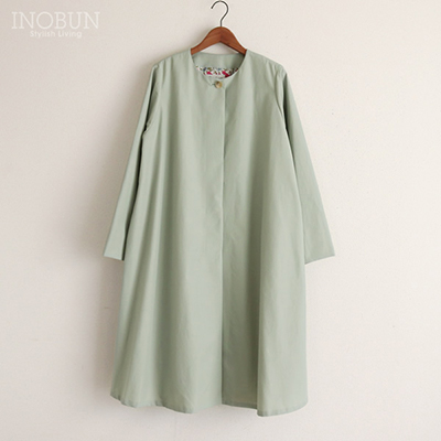 イノブン別注 Leminor 裏地リバティ ノーカラーコート ライトグレー