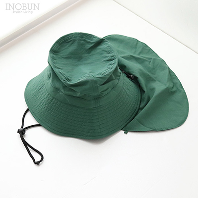 撥水バケットハット冷感生地ネックカバー付き ブルーグリーン