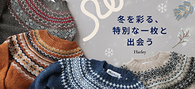 トップスはAran Woollen Millsのニットプルオーバー。合わせやすいベーシックな形ながらも存在感のあるアラン編みがコーディネートのポイントになってくれます。