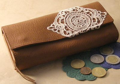 このレース財布。長財布と二つ折り財布があり、なかなかにカラーバリエーションも豊富です。