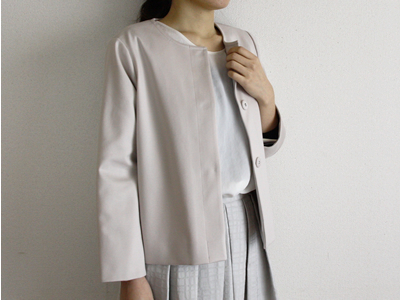 ピンクベージュが上品なジャケット。