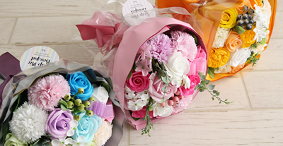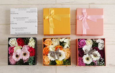 まずはお部屋に飾って、見た目にもかわいい&やさしい石けんの香りのインテリア・ルームフレグランスとして、そしてお風呂でもゆったり楽しめるというそんな特別なフラワーギフトです。