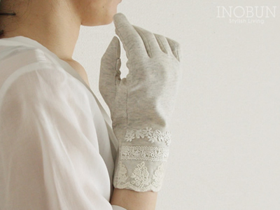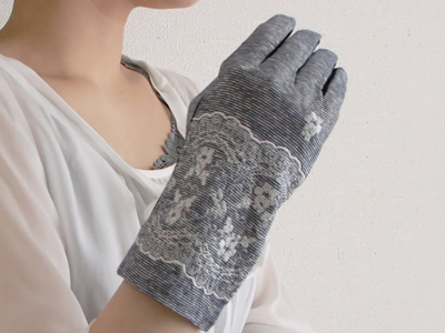 五指ショート レース3段 UVケア UVグローブ(手袋) グレー