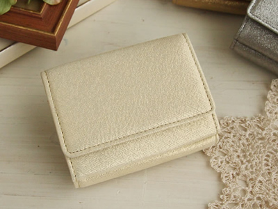 プチウォレット 本革 ミニ財布 折りたたみ 財布 日本製 INOBUNイノブンオリジナル ラメベージュ(KTLM-1)