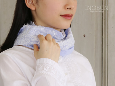 UVカット ストール ワンタッチスカーフ コードレーンレース ブルー