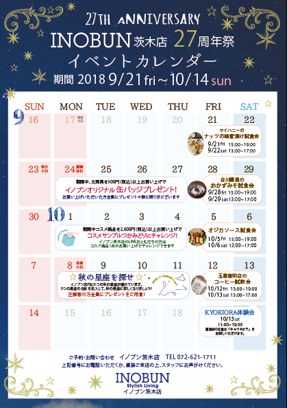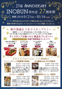 おかげさまで、イノブン茨木店は、2018年9月に27周年を迎えます☆