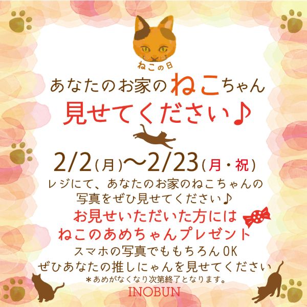 猫の日にあわせて2月はイノブン全店でとっても楽しい猫フェスを開催いたします🐾