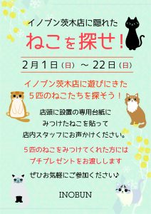 イノブン茨木店に遊びにきた5匹のねこを探そう!