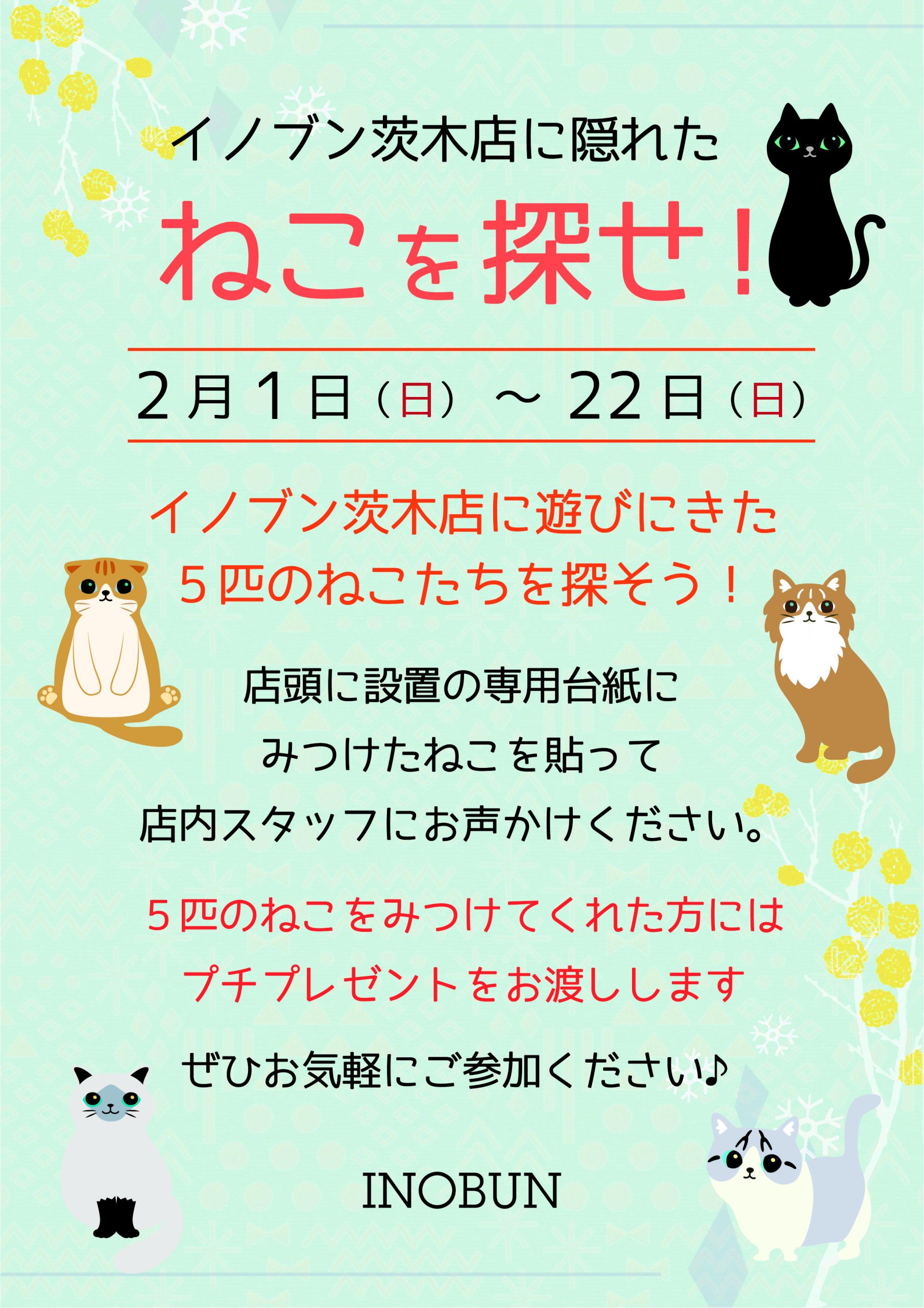 そしてよっつめ!こちらはイノブン茨木店限定のねこイベントです。