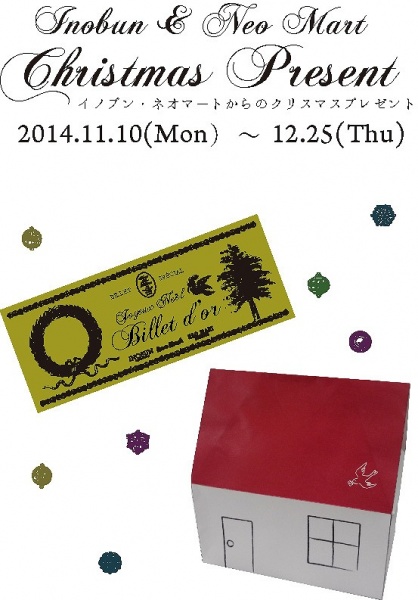 イノブン・ネオマート各店では、11月10日(月)より、オリジナルの小さなお家のお菓子ギフト(750円+税)を数量限定発売します。ゴールドチケットが入っていた方には、リーフレットに掲載の賞品をプレゼントします。お近くのイノブン・ネオマート各店にチケットをお持ちください。ご連絡先などをお伺いします。当選された賞品は引き換え期間終了後、順次ご指定のご住所まで郵送させていただきます。