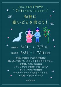 店頭に用意している短冊に願いごとを書いてスタッフまでお持ちください。