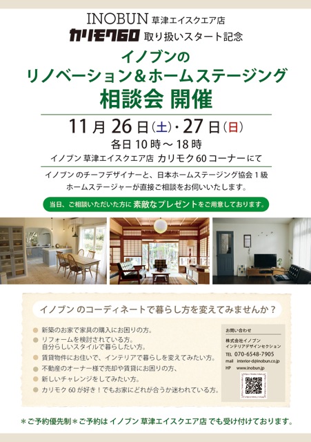 イノブン草津エイスクエア店のカリモク60取り扱い記念として、