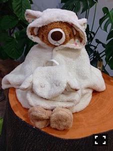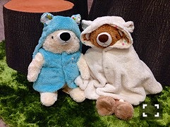 ウサギやクマ,ヒツジのフード付きお洋服,ポンチョ,帽子やベスト,鞄まであります。