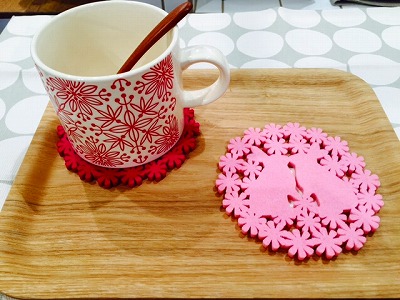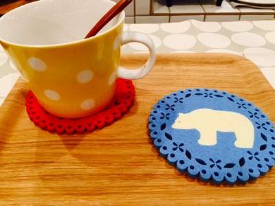 厚みもありますので、グラスについた水滴もしっかり吸収してくれます。フェルト素材の魅力ですね。