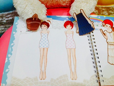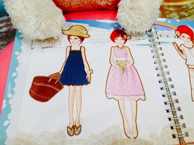 このおしゃれノートの楽しみ方は、付属のお洋服のシールをペタペタして女の子たちをおしゃれに大変身させてあげます!