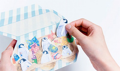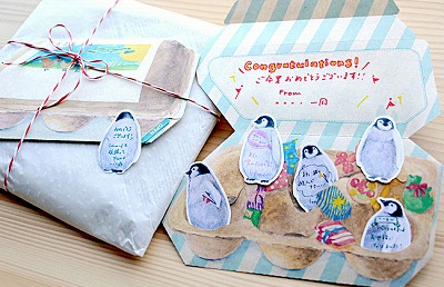 ペンギンを1羽ずつ渡してメッセージを書いてもらうとますますにぎやかなペンギンの「保育園」に。