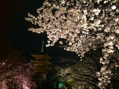 先日、まだお花見をしていなかったので散ってしまう前に桜を見たくて東寺のライトアップに行ってきました。