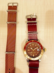 こちらはレトロ感のある革ベルトと、カジュアルなナイロンベルトがセットになっています。
