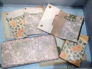 革に転写プリントを施した絵画のような美しい革小物達です。