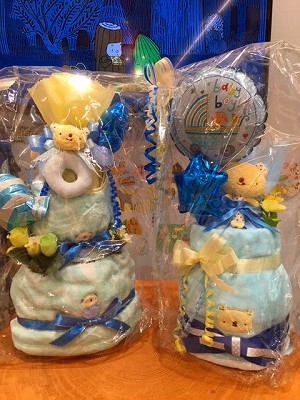 20枚の紙おむつ、ガラガラやタオル、スタイなどすぐに使えるグッズが嬉しいですね。