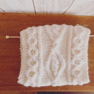 アラン模様、手強いですが、ぽこぽこ可愛いですよね~!編みながらウキウキ。