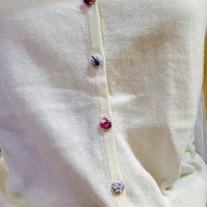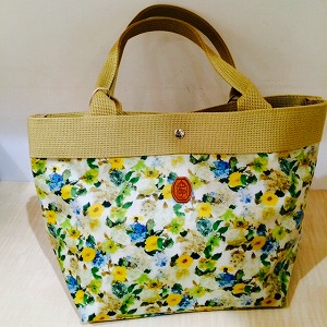 厚く塗った絵の具とフリーハンドで描かれた色とりどりの花々が広がる片田舎の田園風景を連想させる柄とされています。