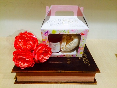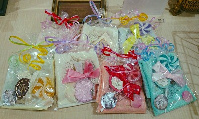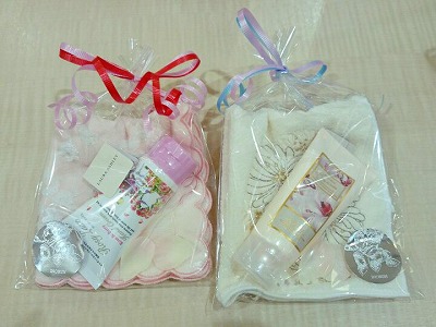 ハンカチとハート石鹸、ハンカチと入浴剤のギフトです。