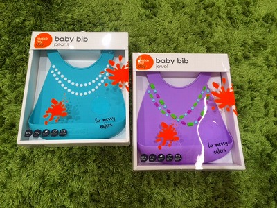柔らかいので付けごごちが良く体にフィット。汚れてもさっと洗い流せます。お子様の成長に合わせて4段回のサイズ調節ができて、クルクルまいてコンパクトに持ち運びもできます。
