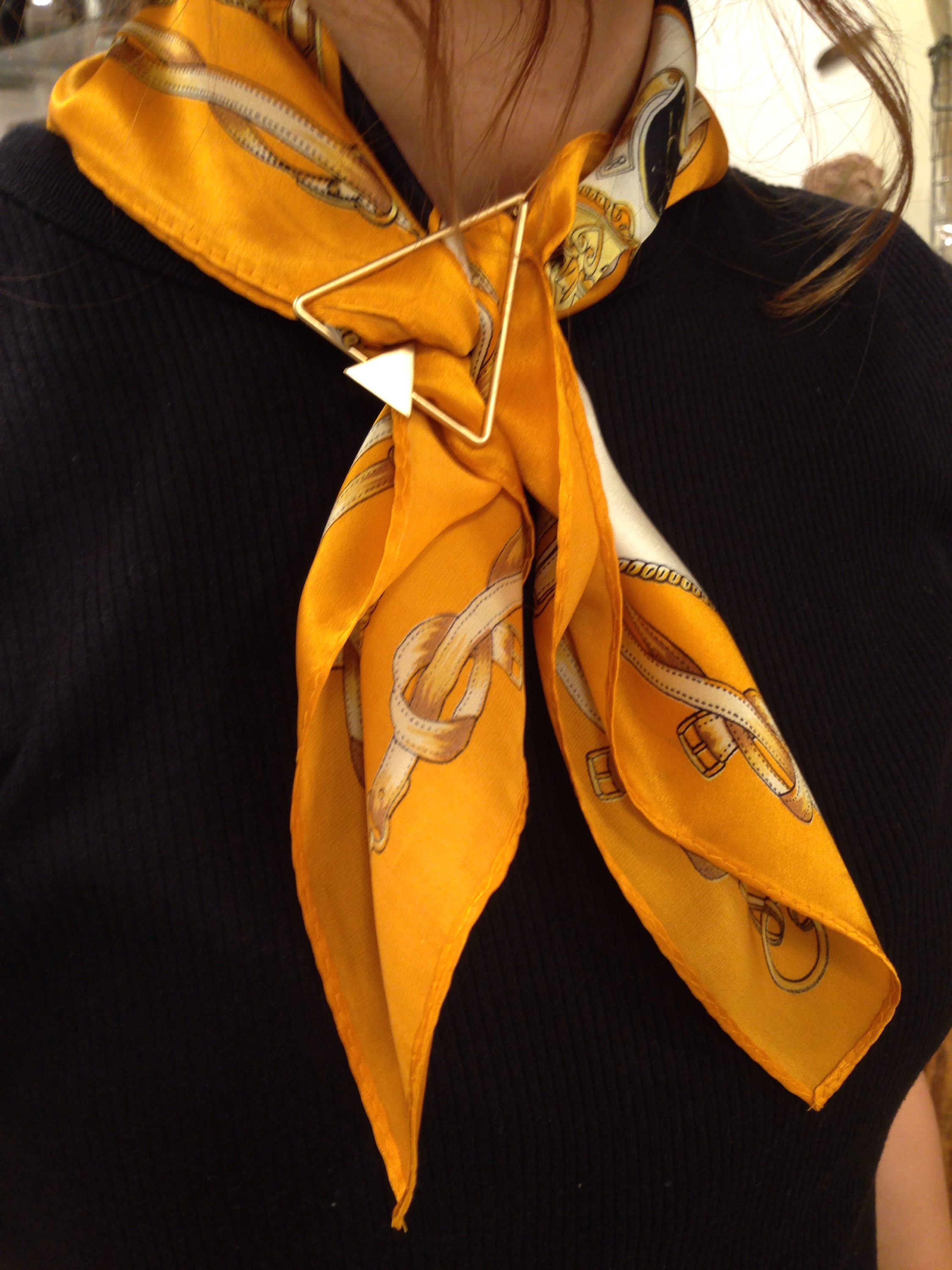 メタルピンはヘアアクセとしてはもちろん、スカーフに付けても可愛いです♪