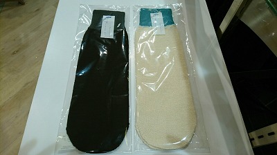 直接肌に触れる一枚目は保湿、吸水性のある絹。指の間からも汗を吸収させる為五本指のものを履きます。