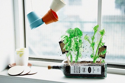 オシャレなボトルが鉢になっています!