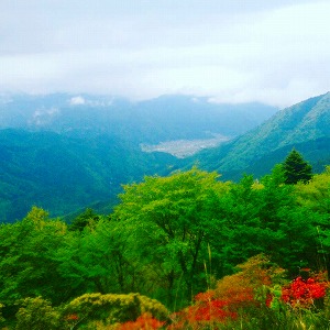 山頂から望む山の緑はとても深くて、足の疲れが吹き飛ぶキレイさでした。