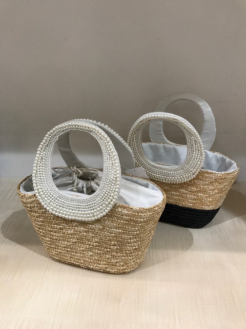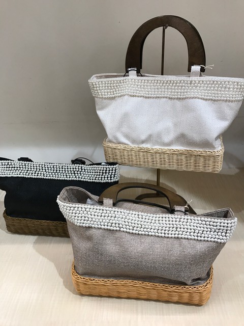 本日はその中でもパール使いが素敵で目を惹くカゴバッグをご紹介いたします。