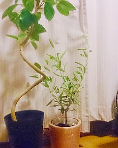 朝はいいお天気だったので、ベランダに出して出かけた植物たちをあわてて中へ。
