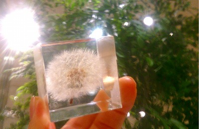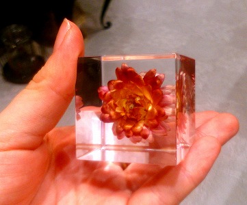 植物の美しい瞬間をとらえて、4cm角の透明アクリルキューブに封入。