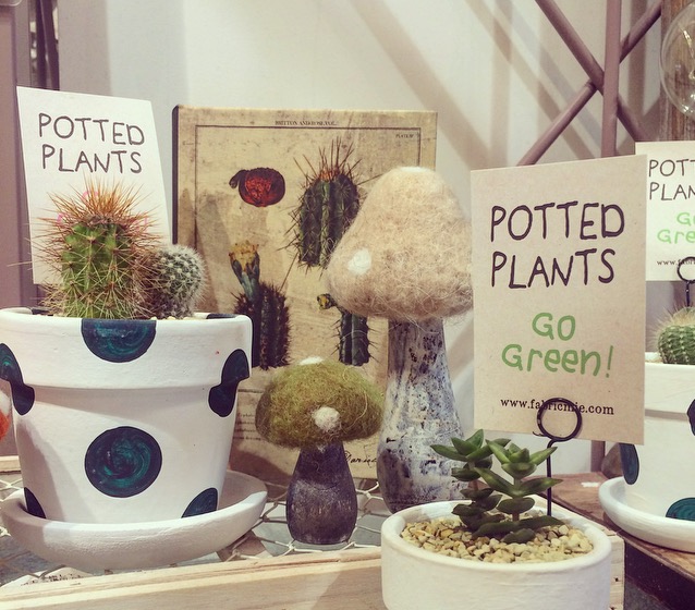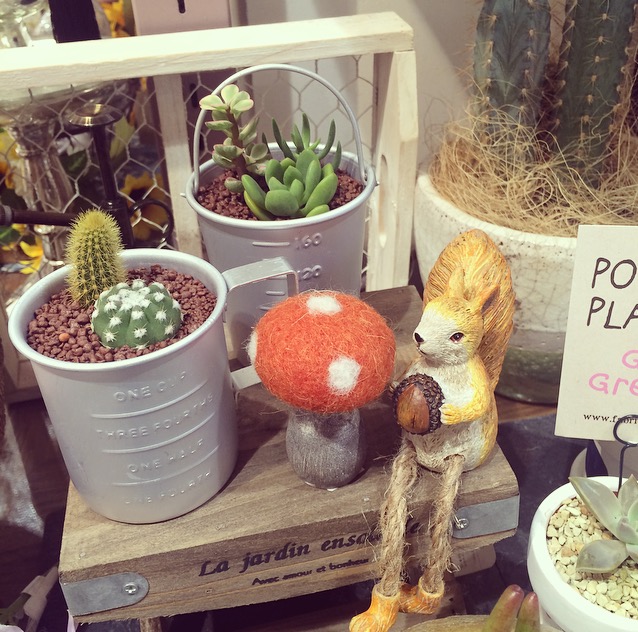 鉢に描かれたドットがかわいい多肉・サボテンの寄せ植えたち*