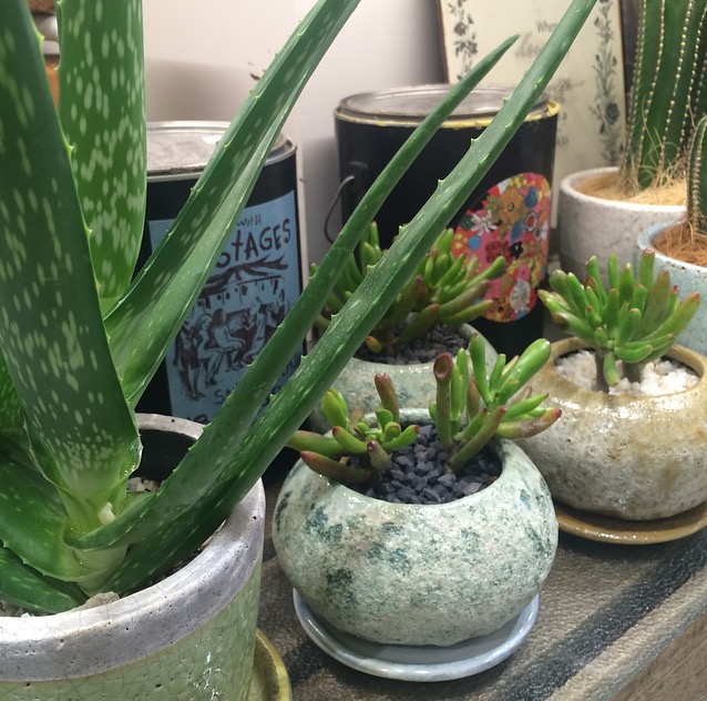 ずしっと重量感のあるしっかりとした鉢に植わったサボテンや多肉植物は