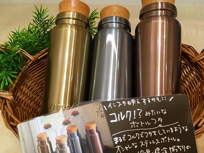 こちらはフタがまるでコルクのような形をしたステンレスボトル。