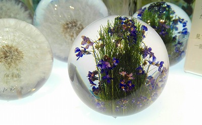ポリエステル樹脂に本物の天然花を閉じ込めたもの。