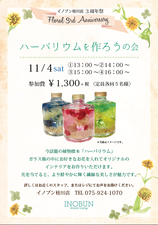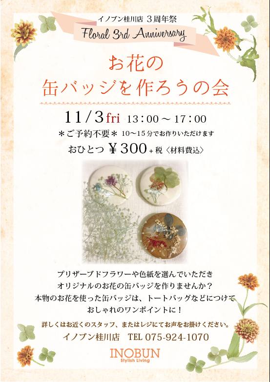 11月2日(木)~5日(日)までの4日間、税込10.000円以上お買い上げのお客様に3周年オリジナルのエディブルフラワー(食べられるお花)入りのクッキーをプレゼント!