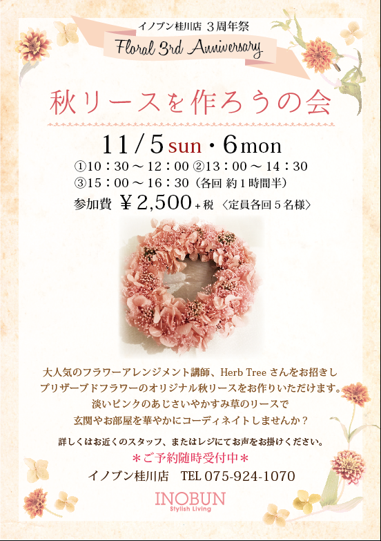 ・5日(日) .6日(月)「秋リースのワークショップ」
