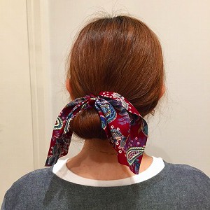 バンダナでアレンジした様なおしゃれさなのに、ゴムで髪を縛るだけ、さらに大きなリボンが結び目を隠してくれる、そんな優秀アイテムがたくさん登場しました!